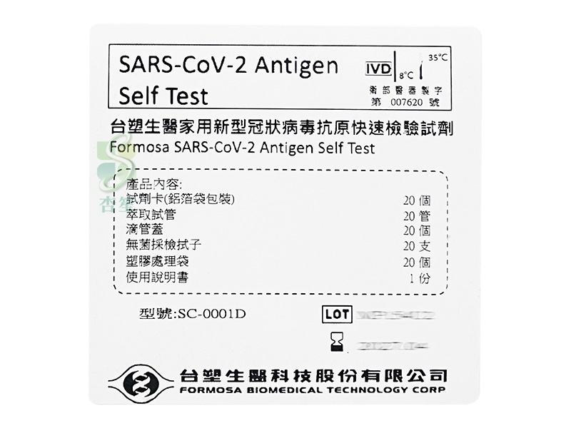 台塑生醫家用新型冠狀病毒抗原快速檢驗試劑